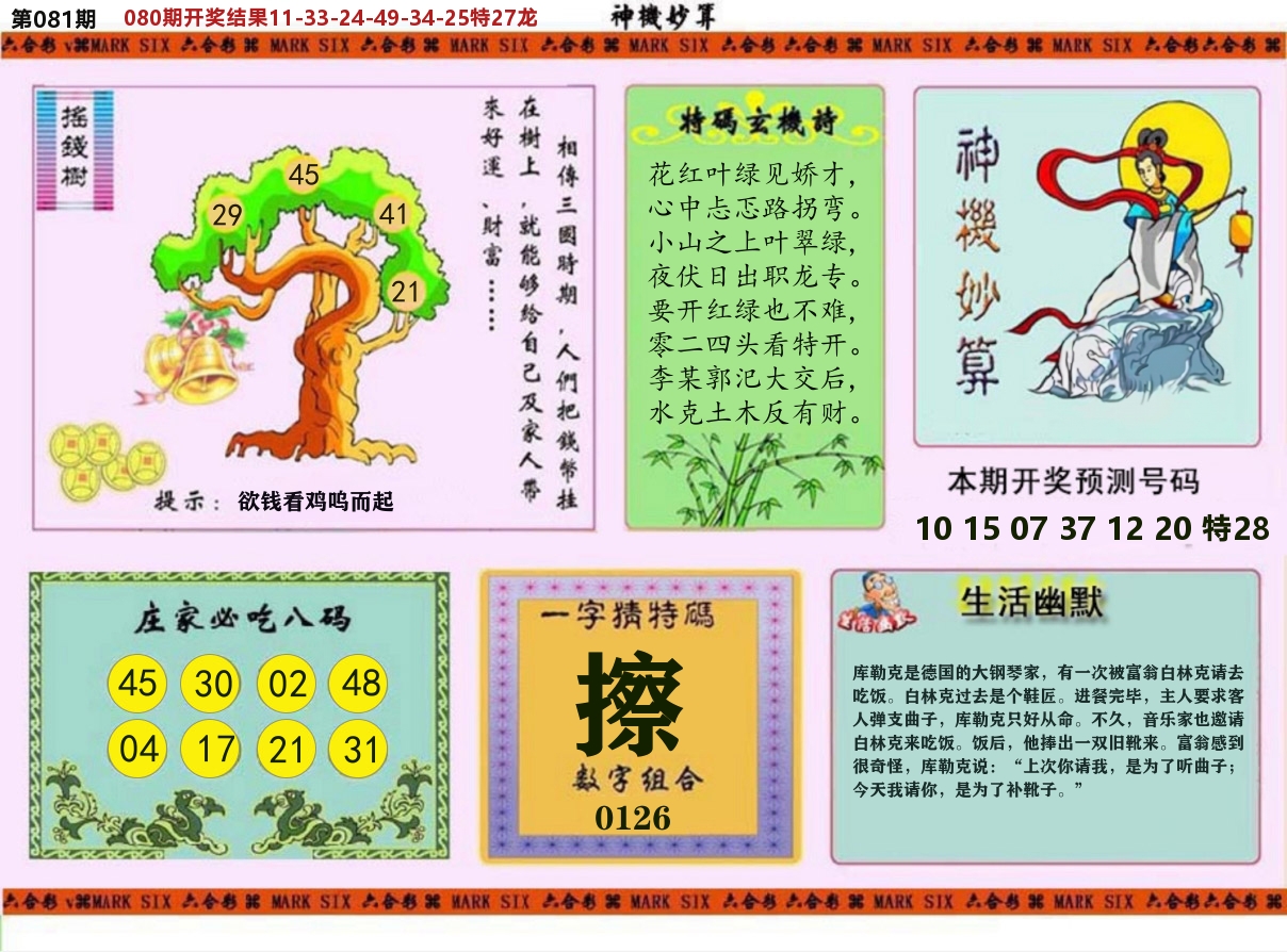 081期⑤肖【马猴虎鸡鼠】开 ?? 准